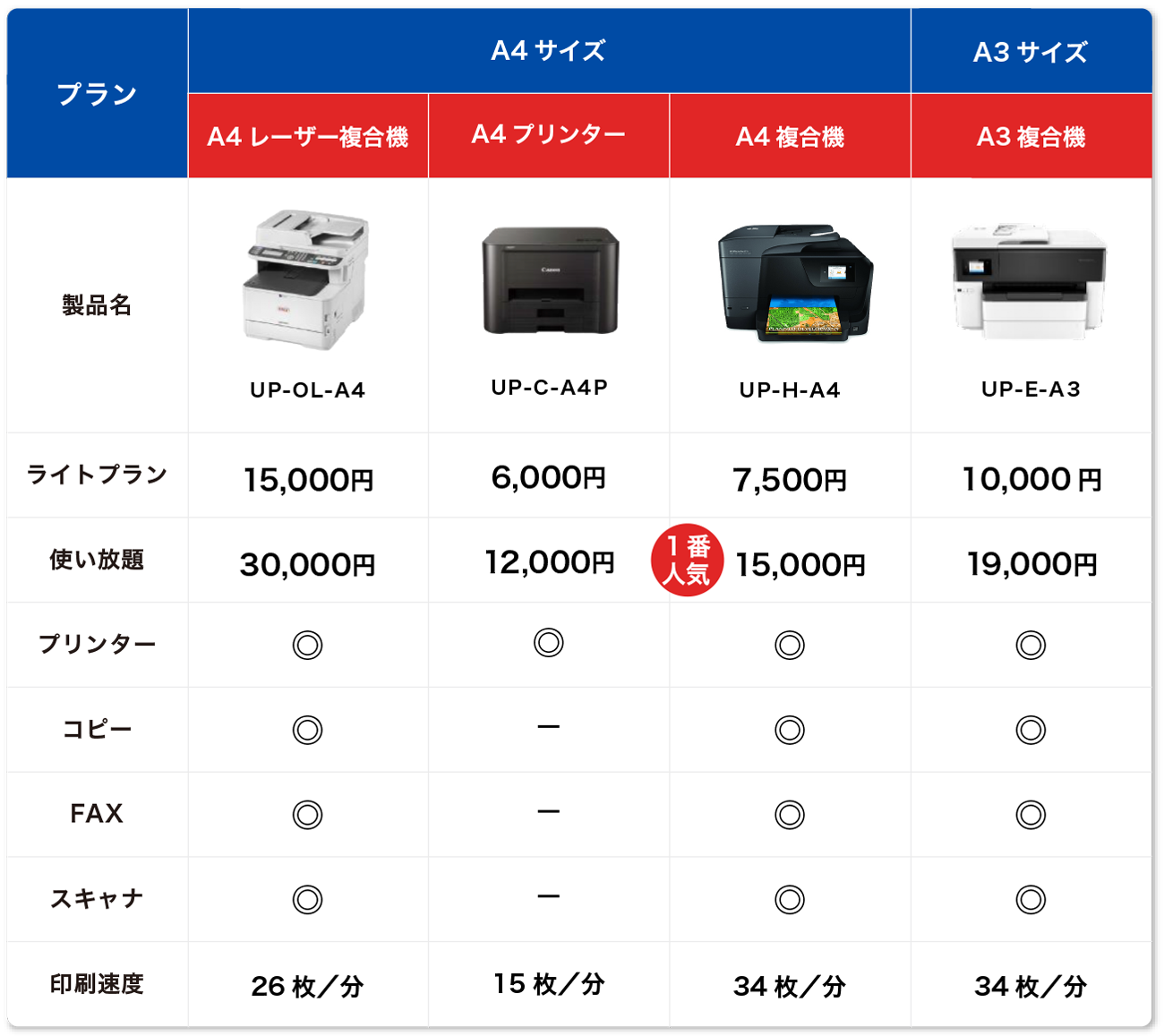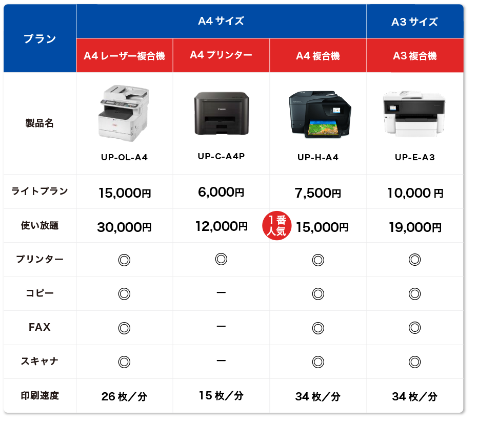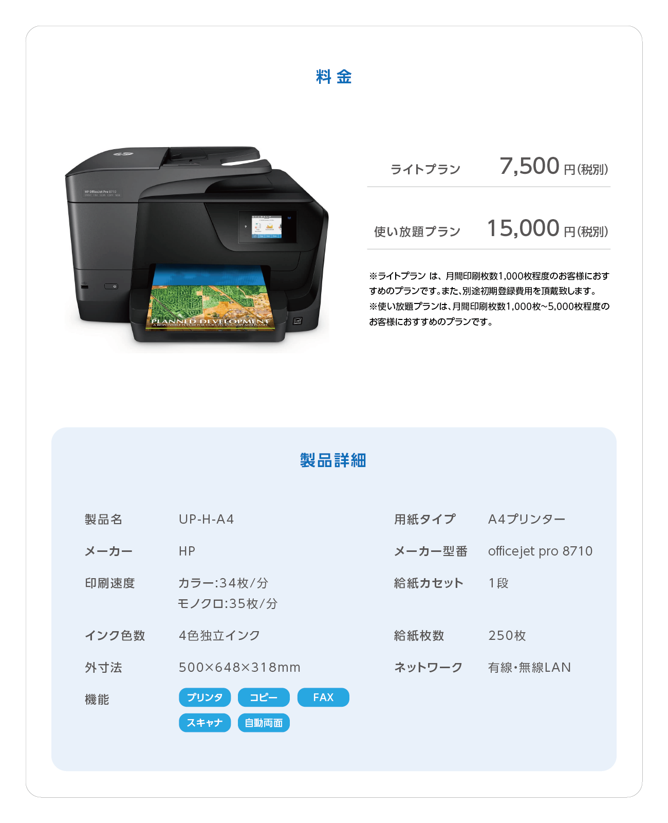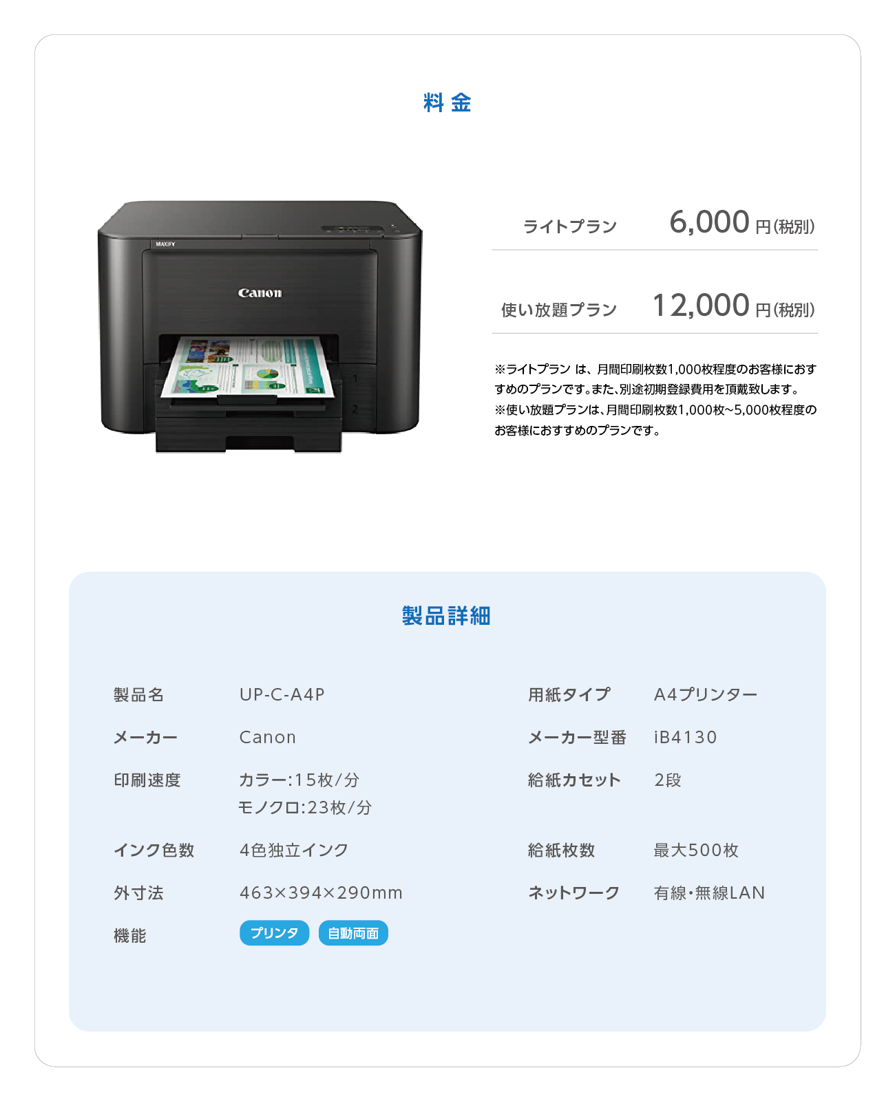 使い放題プランに上限は設けておりません。 印刷枚数の少ないお客様へ向けてライトプランのご用意もございます。