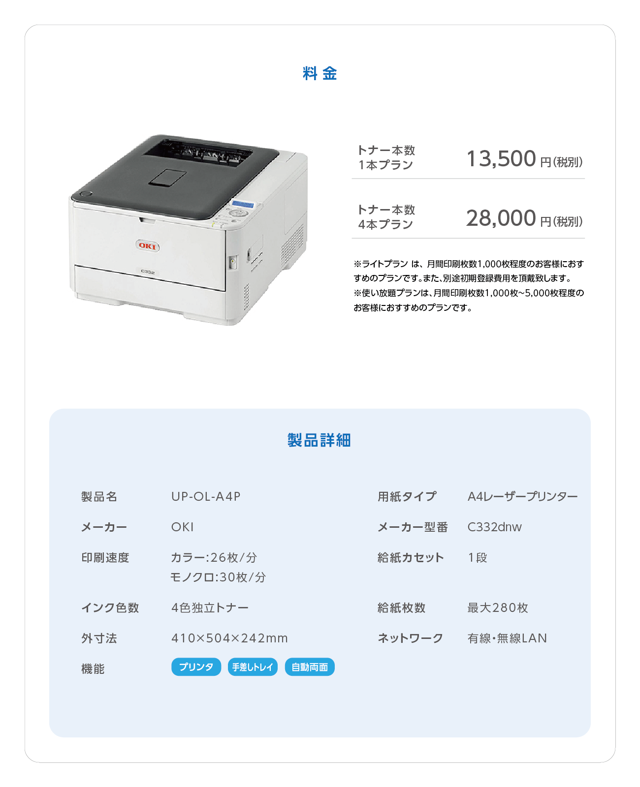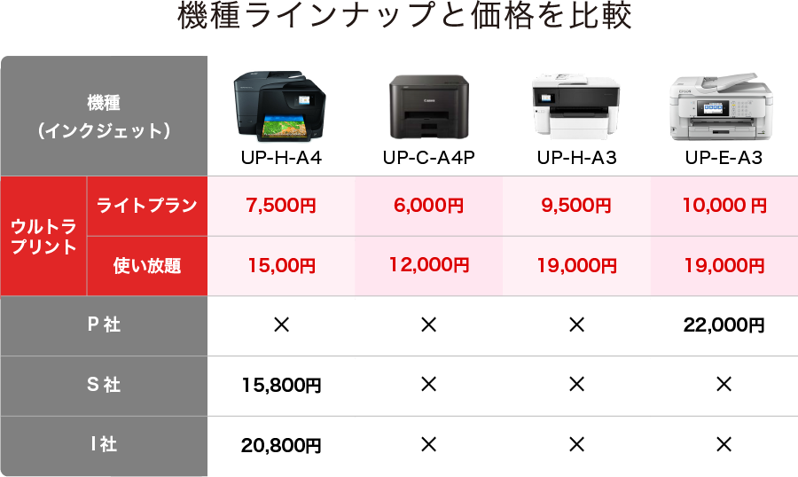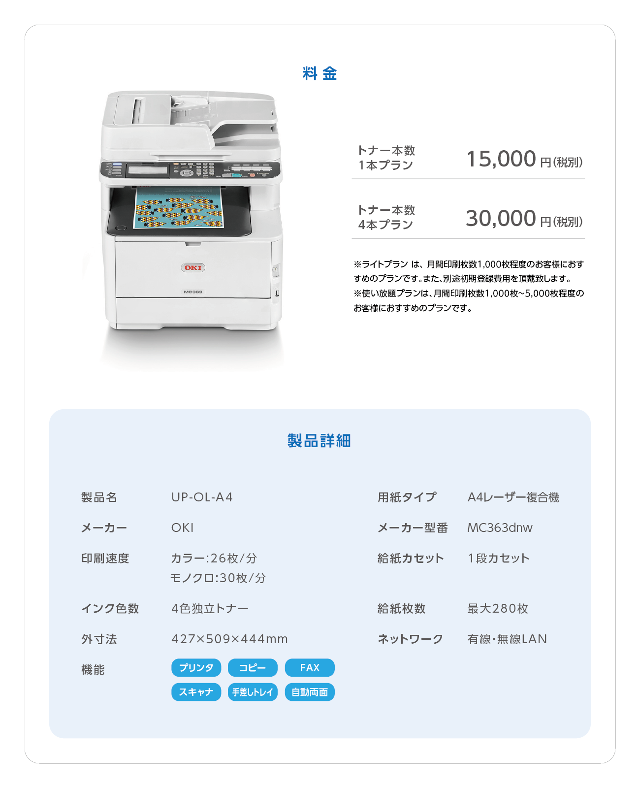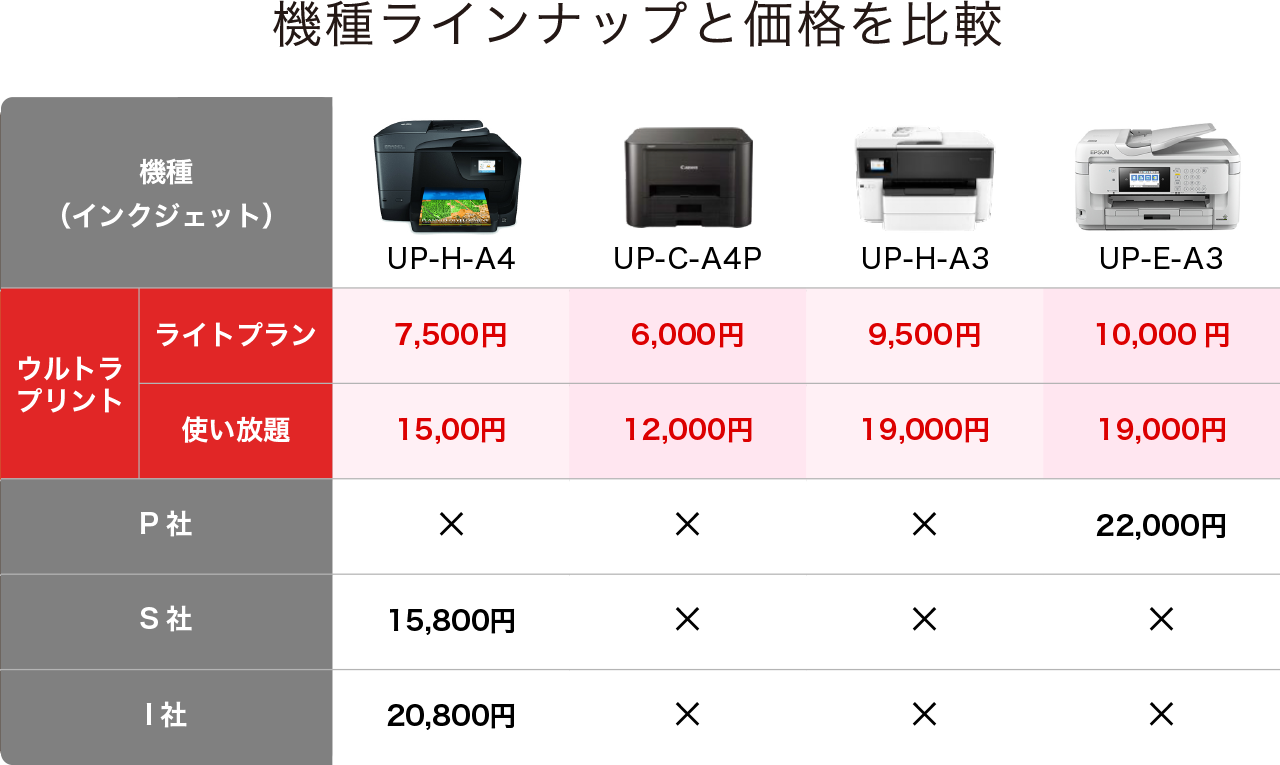 使い放題プランに上限は設けておりません。 印刷枚数の少ないお客様へ向けてライトプランのご用意もございます。